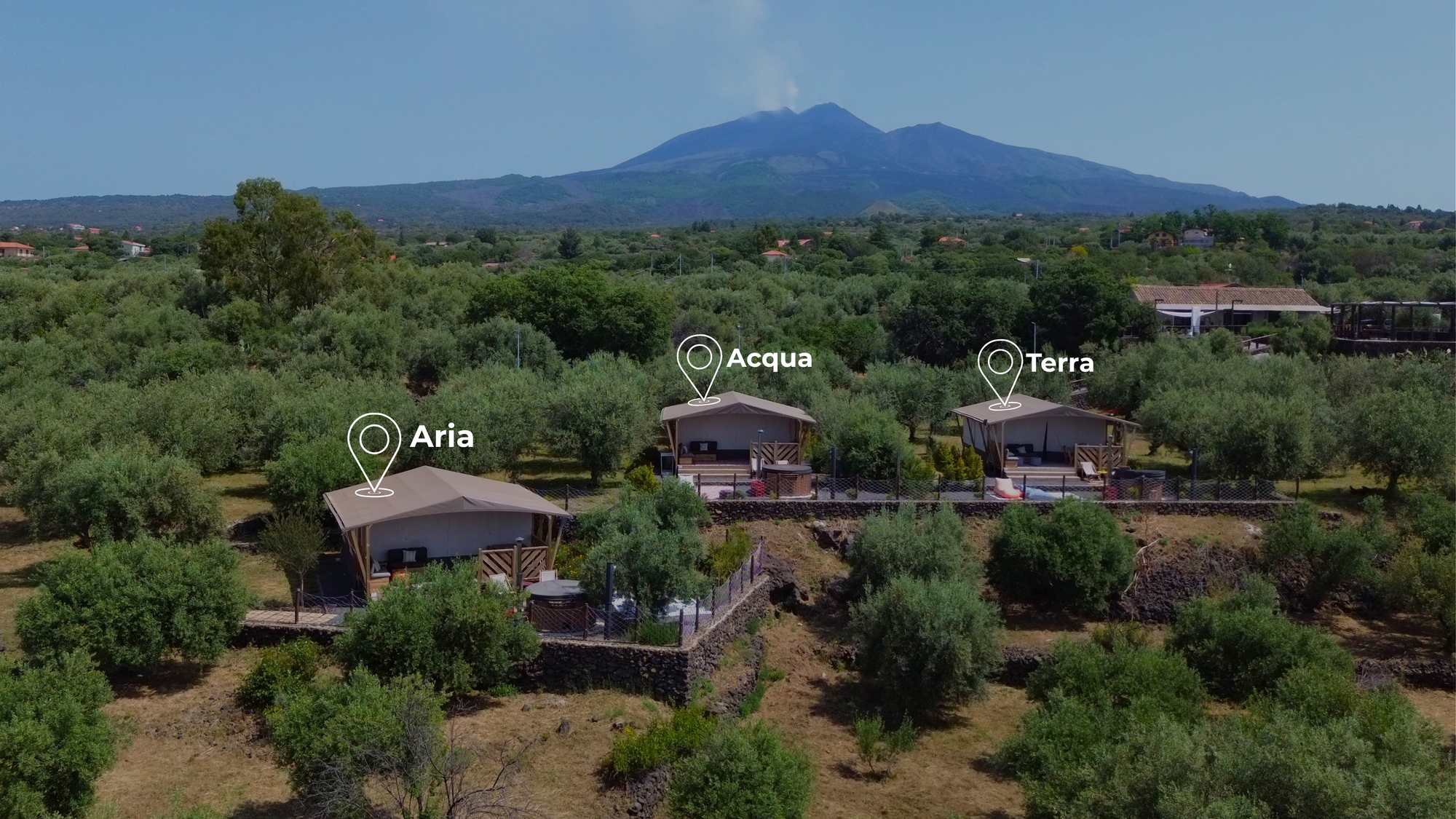 L'Acqua Lodge è un'oasi di tranquillità, dove l'elemento acqua è protagonista. È caratterizzata da interni che riflettono i toni del cielo e del mare. Con un idromassaggio esterno privato, è l'ideale per rilassarsi ascoltando i suoni delicati della natura circostante. La terrazza panoramica offre momenti indimenticabili sotto il cielo stellato dell'Etna.