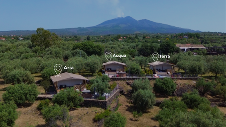 La Lodge Terra è un rifugio dove il design rustico incontra il comfort moderno. Immersa tra gli ulivi secolari, questa Lodge è perfetta per chi cerca un'esperienza di pace e serenità. Dotata di un ampio idromassaggio, finiture in materiali naturali e una terrazza privata, offre una vista senza eguali sul paesaggio vulcanico dell'Etna. Perfetta per una fuga romantica o una pausa rigenerante.